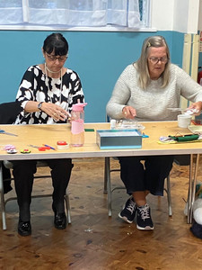 Some fabulous coasters and plaques were produced thanks Hannah. Greeting cards were hand crafted and we used jelly roll fabric to make flowers to add to charity gift bags. We also managed to catch up and enjoy a cuppa while we worked, even though in these pictures we all look hard at work !!.